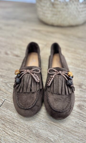 Zapato de Salón Destalonado Antelina Hebilla Marrón