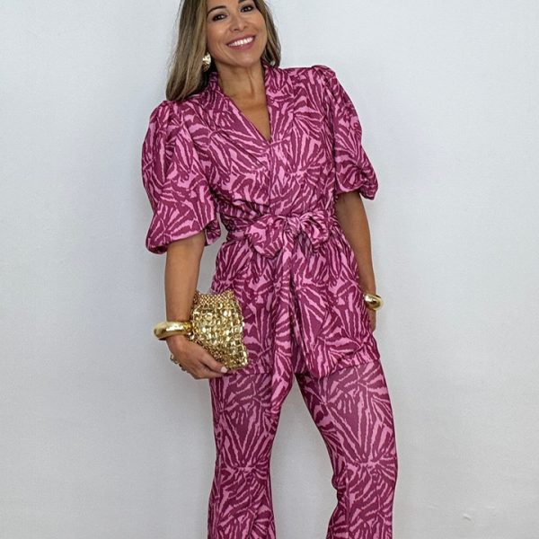 Chaqueta Mabel cinturón rosa
