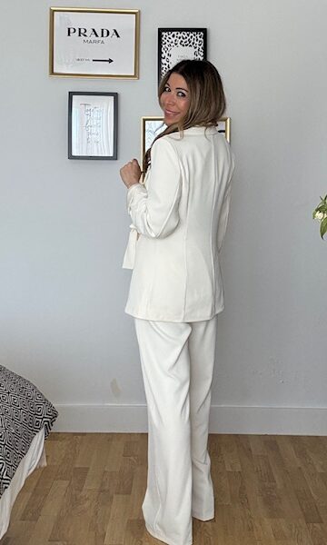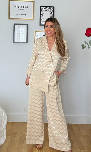 Traje de chaqueta crepé lazo beige