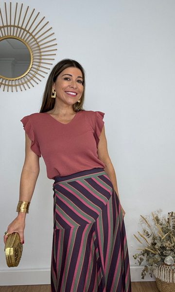 Falda Nadia Rayas Naranja Morado