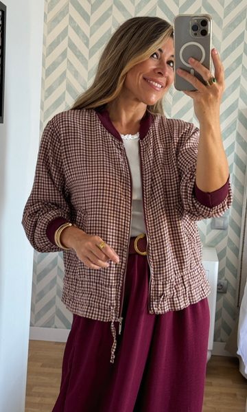 24,99€Bomber cuadritos burdeos