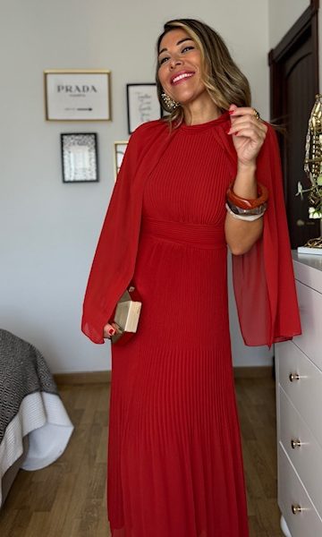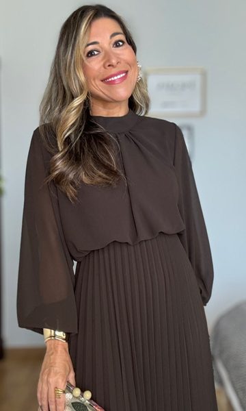 Vestido Invitada Plisado Elisa MarrónAgotado.