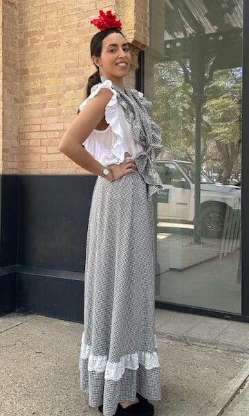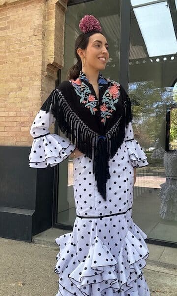 Vestido Flamenca Jazmín Lunares Blanco Negro