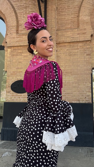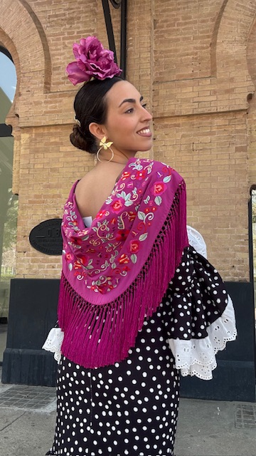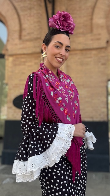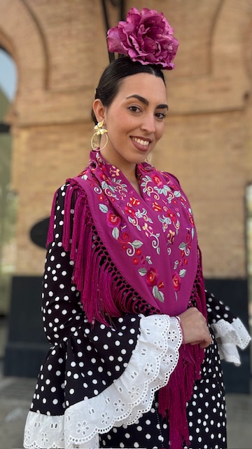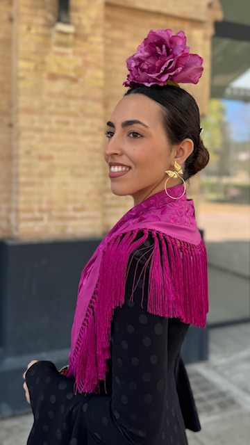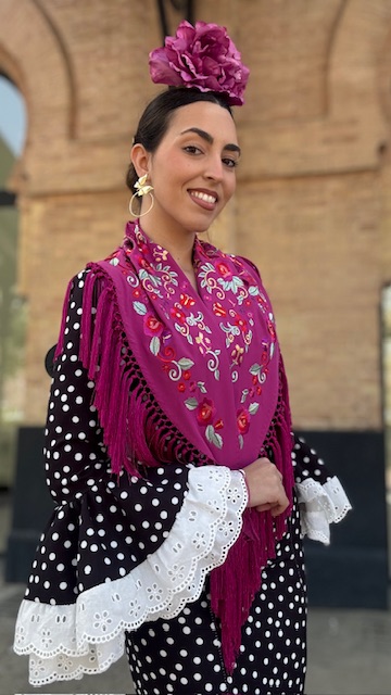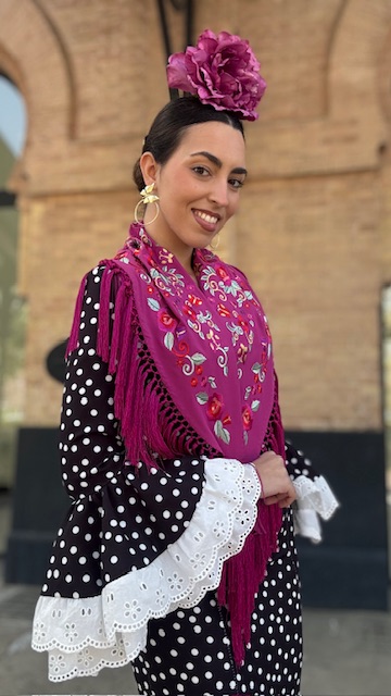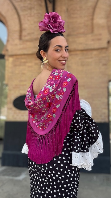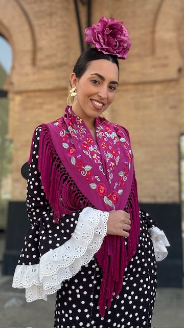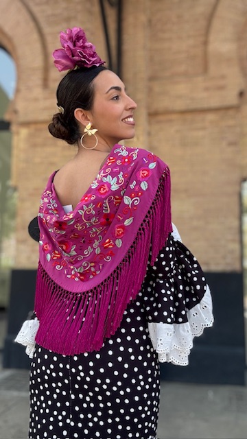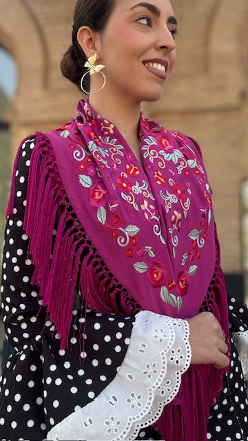 Mantón bordado en color buganvilla bordado en tonos multicolor. Tamaño cadete.
