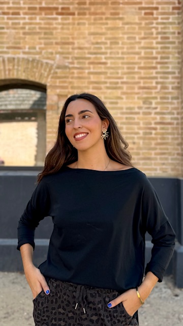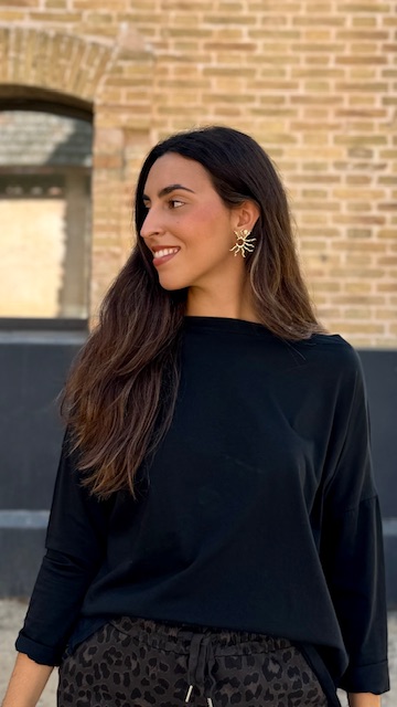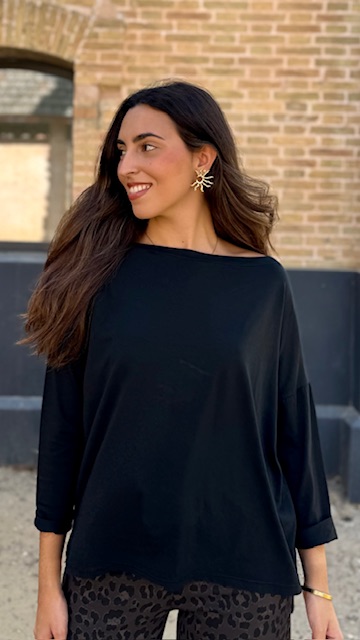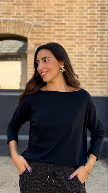 Camiseta en color negro con cuello barco. Talla única válida desde la 36 hasta la 44.