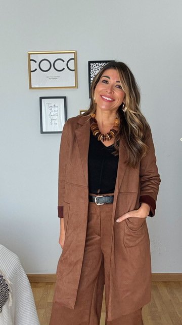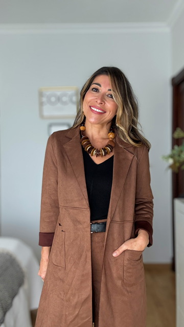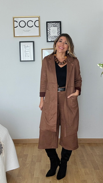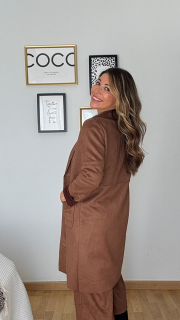 Abrigo de antelina en color camel. Talla única válida desde la 36 hasta la talla 44.