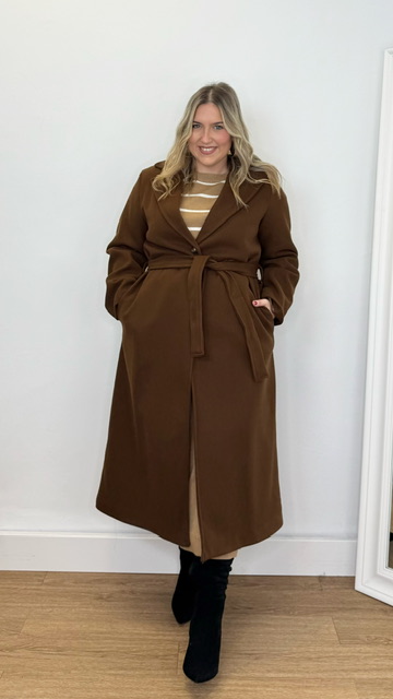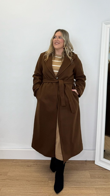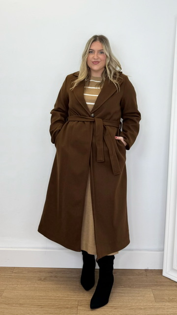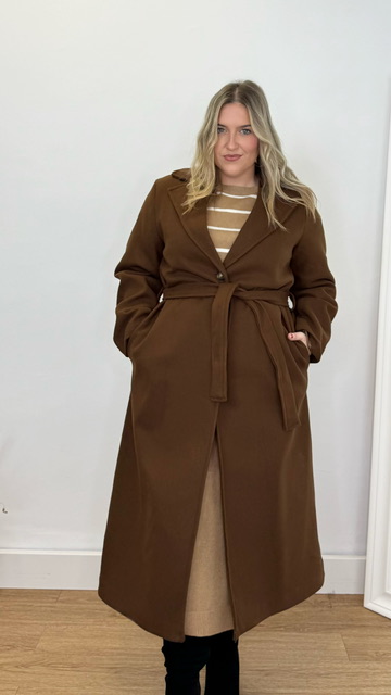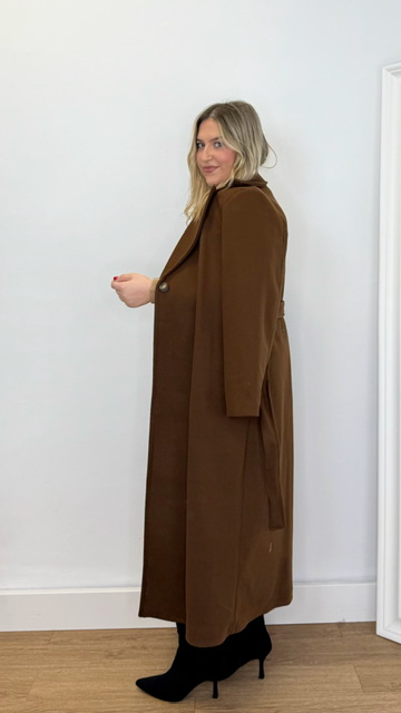 Abrigo de paño con cinturón y bolsillos. Completamente forrado. Talla única válida desde la 36 hasta la 44.