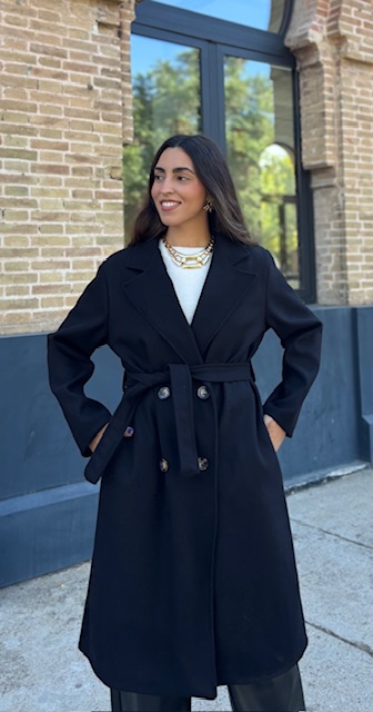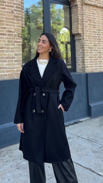 Abrigo de paño en color negro. Talla única válida desde la 36 hasta la 42.