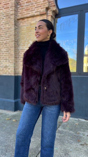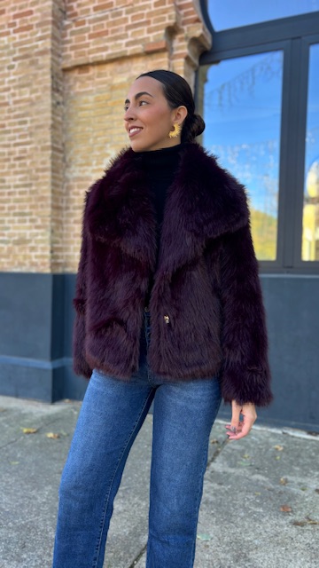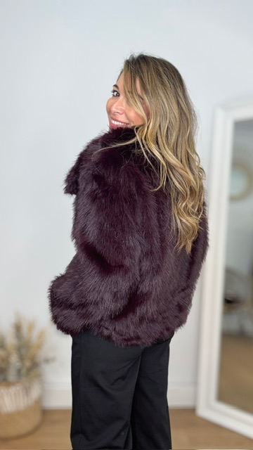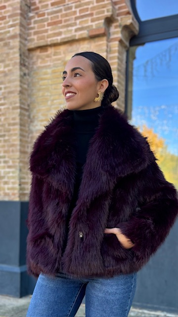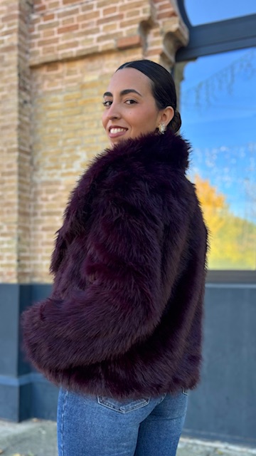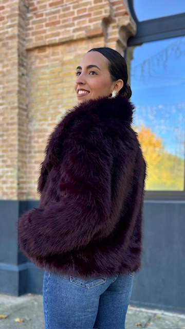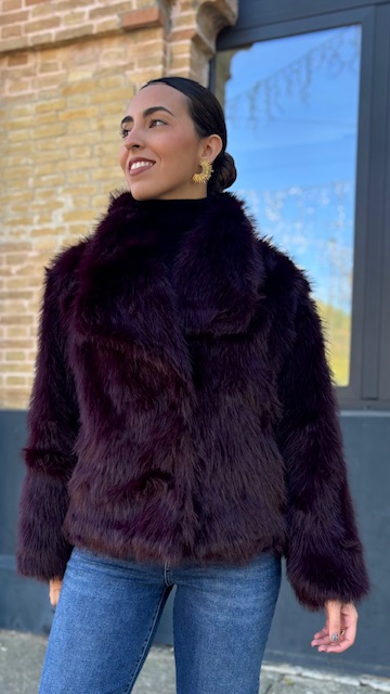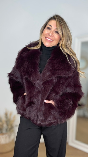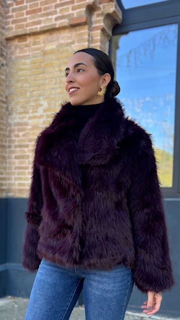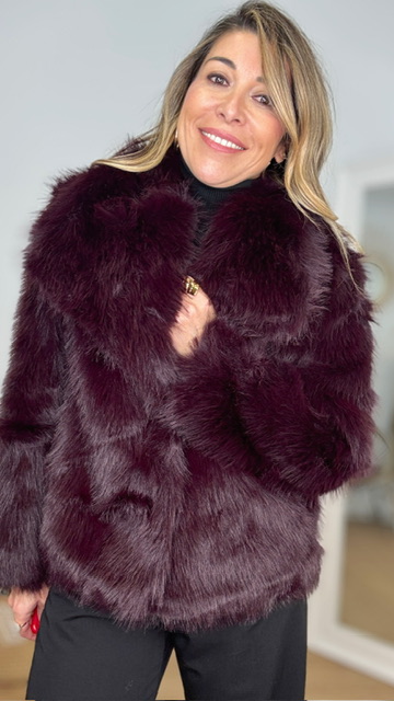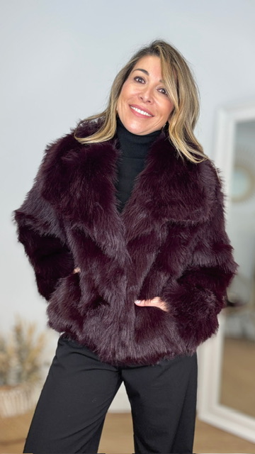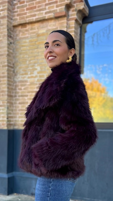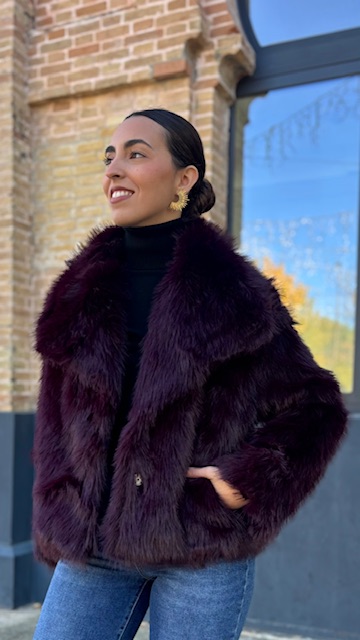 Abrigo de pelo sintético en color berenjena. Talla única válida desde la 36 hasta la 44.