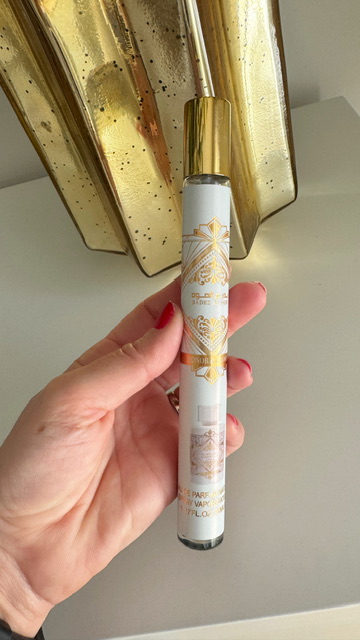 Agua de perfume en versión pequeña de 35 ml para el bolso. Aromas con toques de vainilla, piña, cúrcuma y pimienta negra, con detalle de oud que le da ese toque amaderado con detalles árabes.