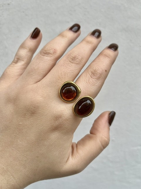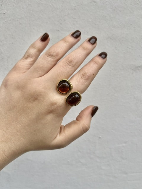 Anillo doble con piedra en carey en dorado. Ajustable.