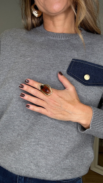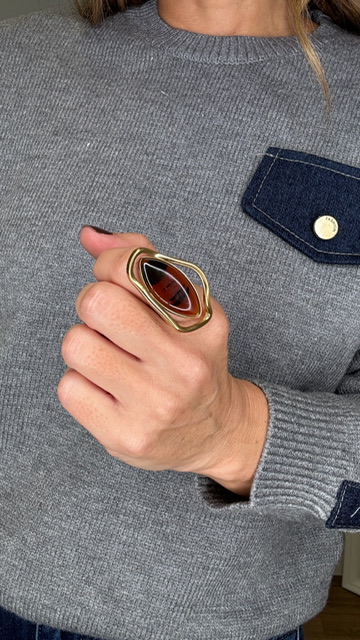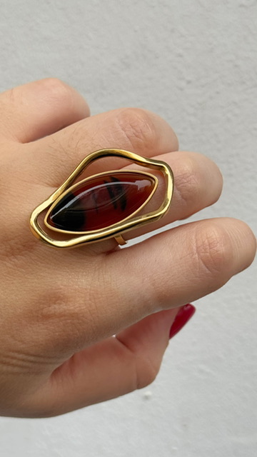 Anillo asimétrico con piedra en carey en dorado. Ajustable.