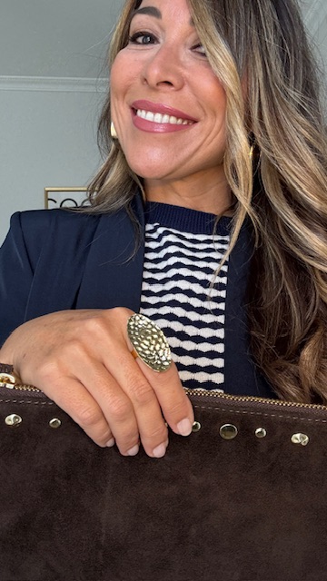 Anillo con forma ovalada con relieve en dorado. Graduable.