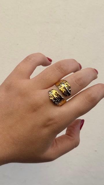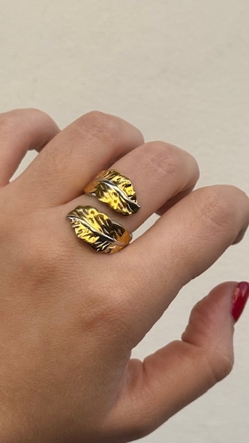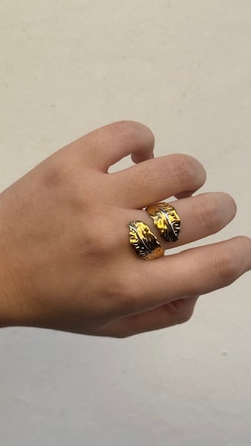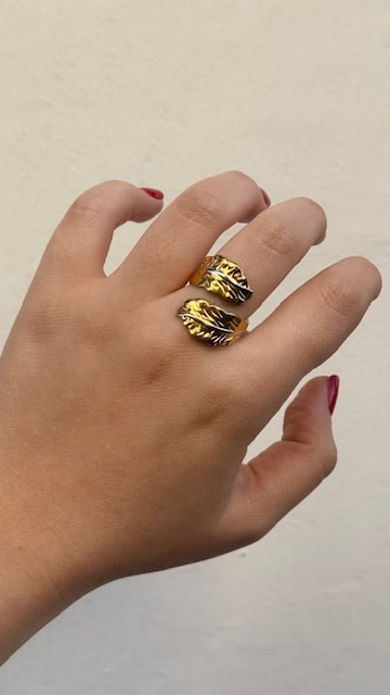 anillo de acero inoxidable bicolor con forma de pluma. AJUSTABLE.