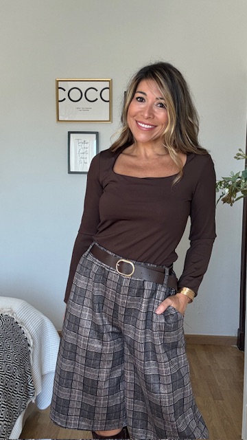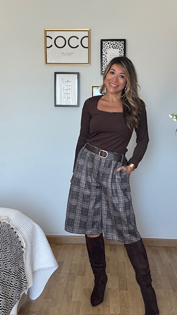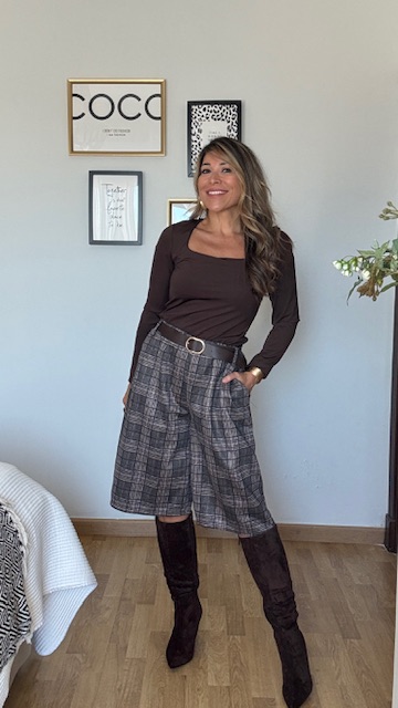 Bermudas con estampado y cinturón en color marrón chocolate. Talla única válida desde la 36 hasta la 40/42.