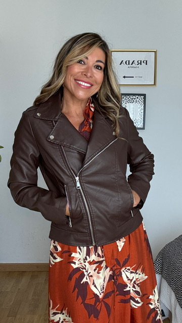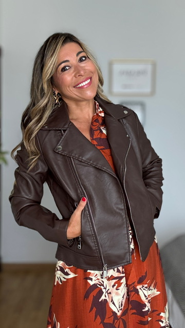 Chaqueta de polipiel en color marrón chocolate. Disponible por tallas. Tallaje pequeño.