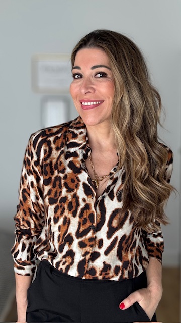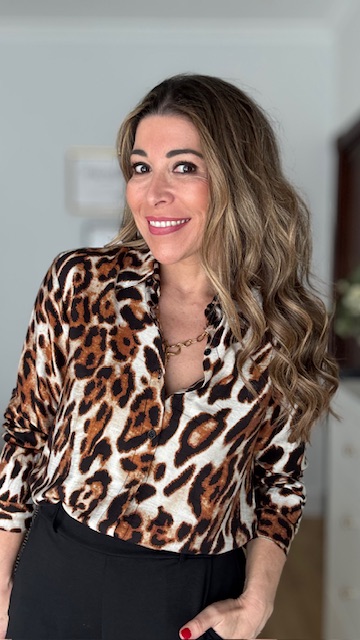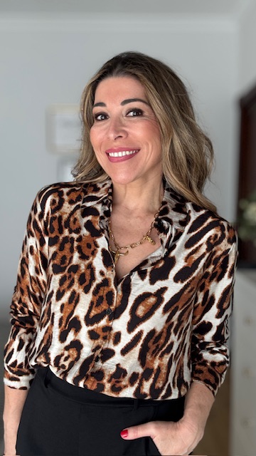 Blusa con estampado animal en color teja. Disponible por tallas.