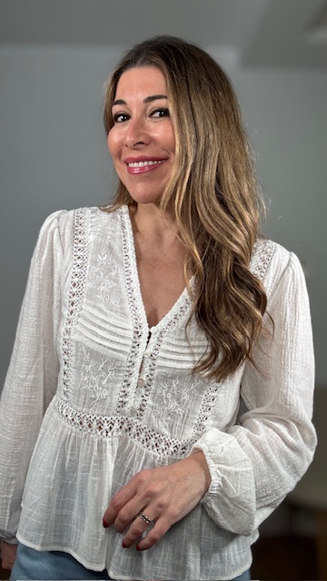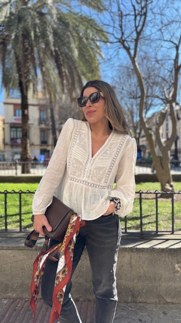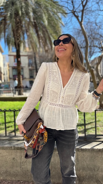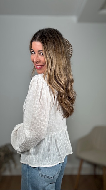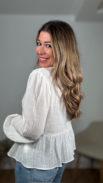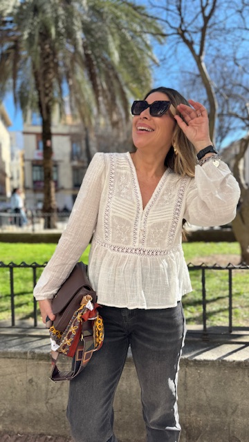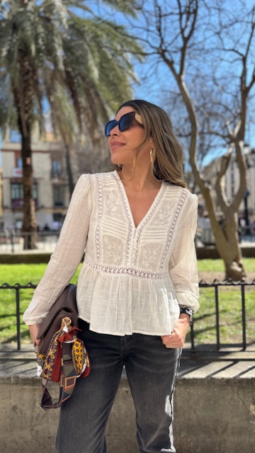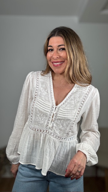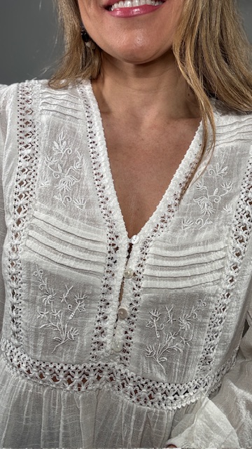Blusa en color blanco con detalles de tablitas y bordados. Tallas SMLXL