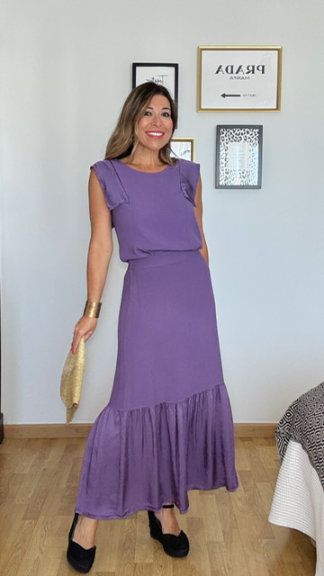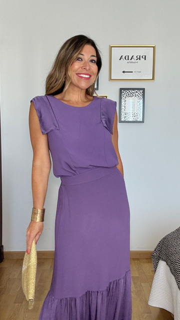 Blusa confeccionado en tejido simulando el lino en color malva. Talla única válida desde la 36 hasta la 40.