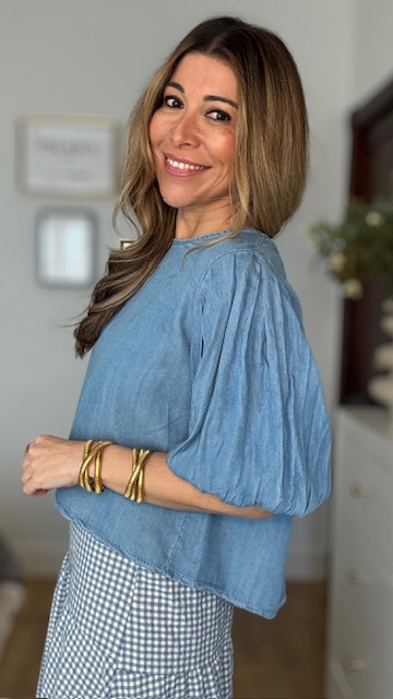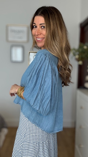 Blusa Denim Abullonada