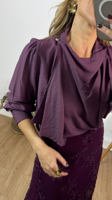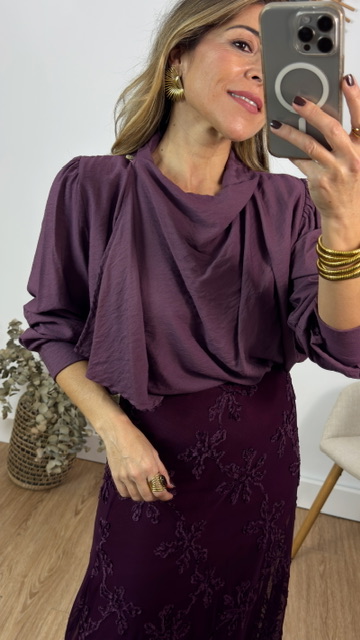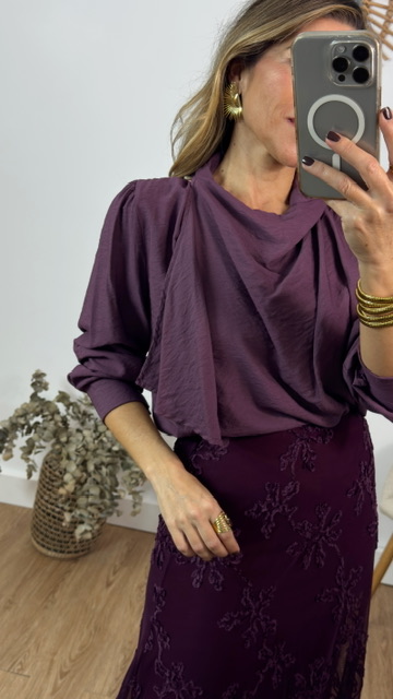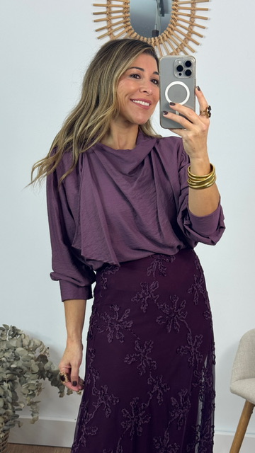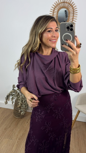 Blusa en color rosa empolvado con efecto pañuelo. Talla única válida desde la 36 hasta la 44.