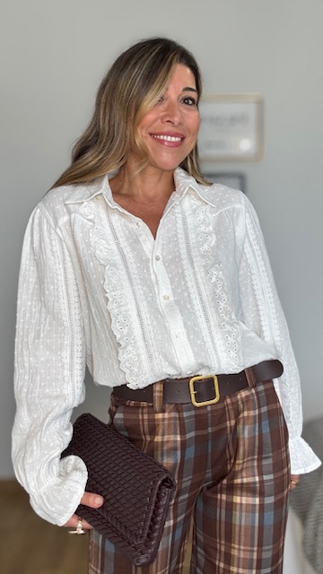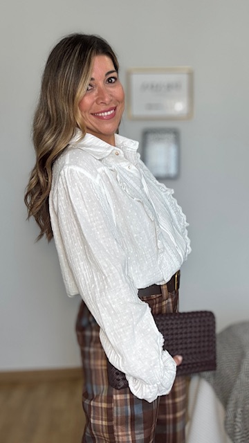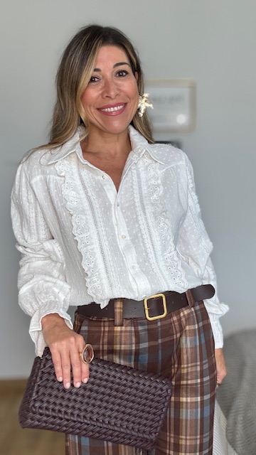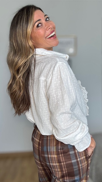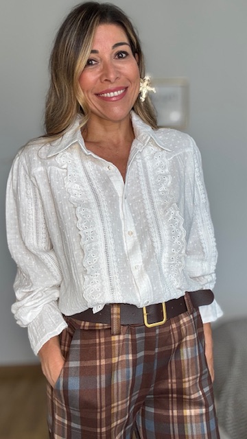 Blusa de plumeti con botonadura delantera en color blanca. Talla única desde la 36 hasta la talla 44.