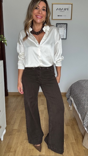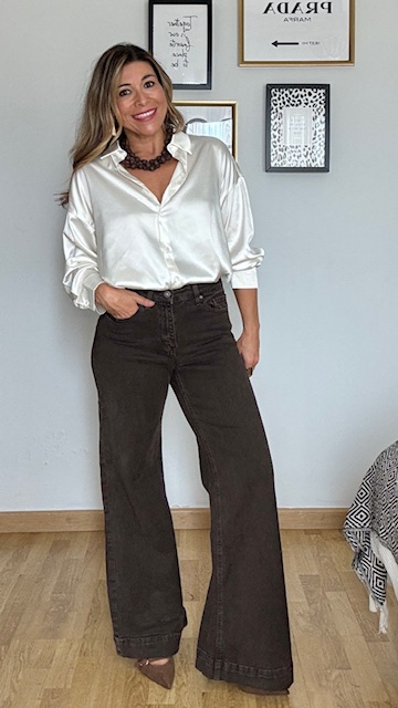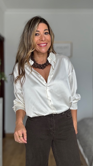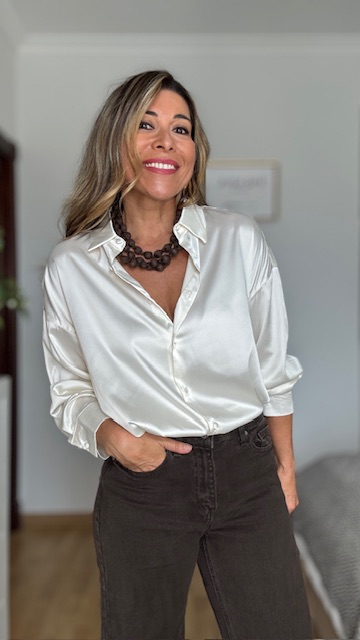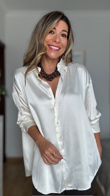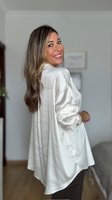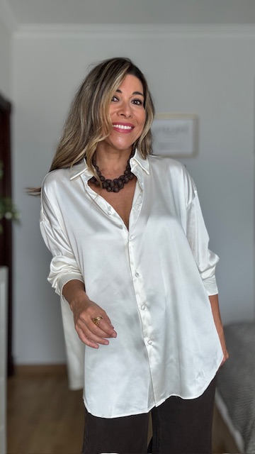 Blusa confeccionada en tejido satinado en color beige, con botonadura forrada en el mismo tejido. Talla única válida desde la talla 36/38 hasta la 42/44.
