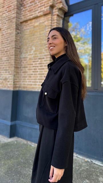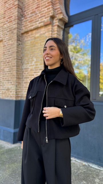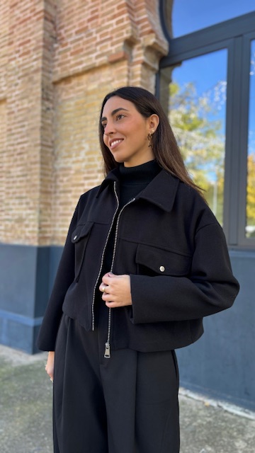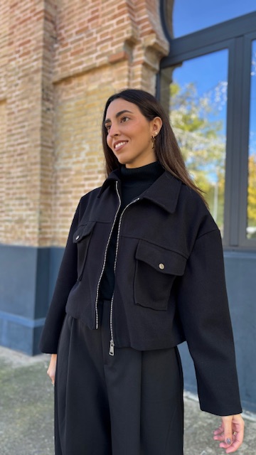 bomber confeccionada en tejido de paño con cremallera en la parte delantera. Talla única válida desde la 36 hasta la 44.