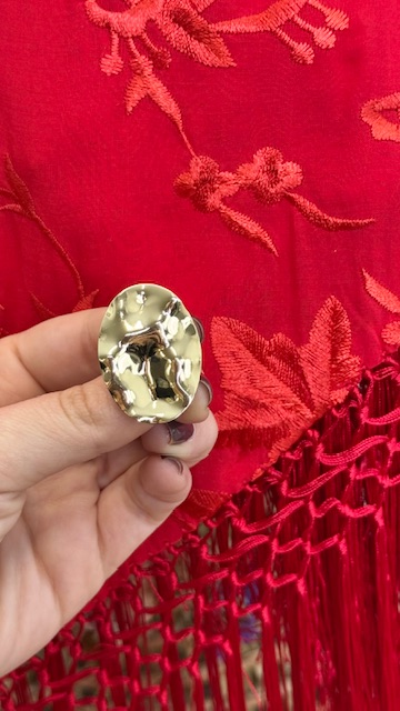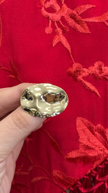 Broche en forma circular con relieve en dorado.100% HIERRO.