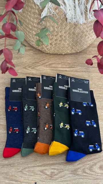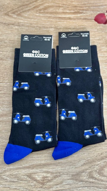 Calcetines de caballeros de colores con dibujos de motos. Desde la talla 40 hasta la 46.
