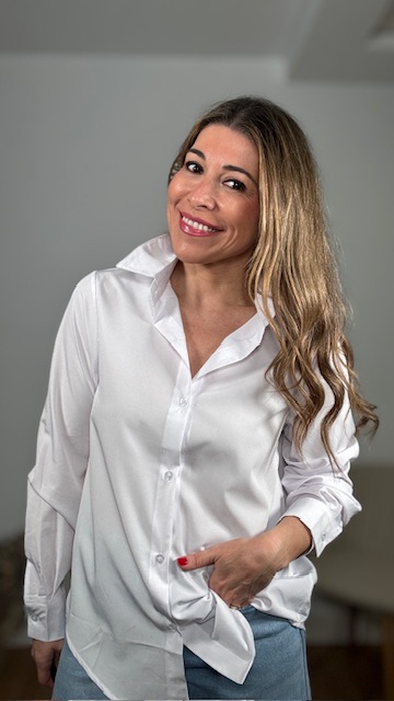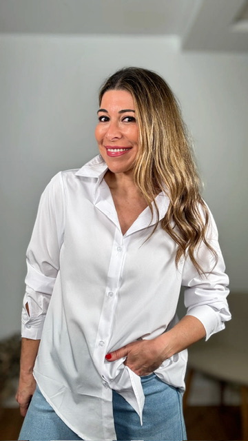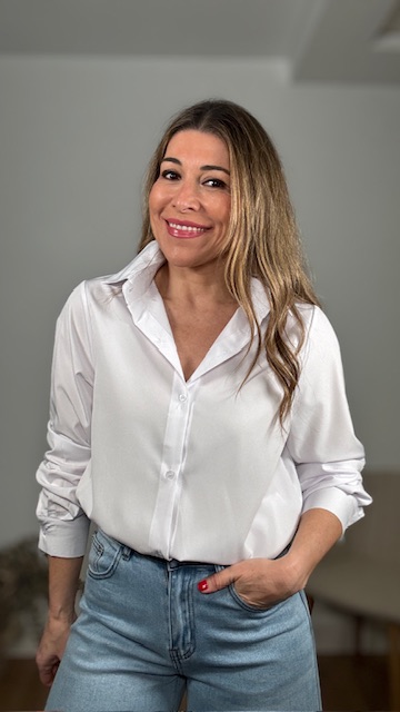 Camisa básica blanca confeccionada en tejido fluido. Tallas SMLXL