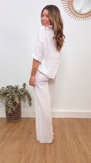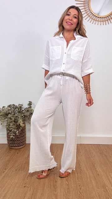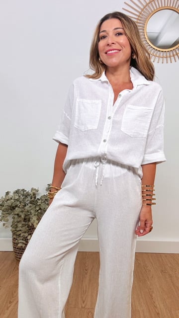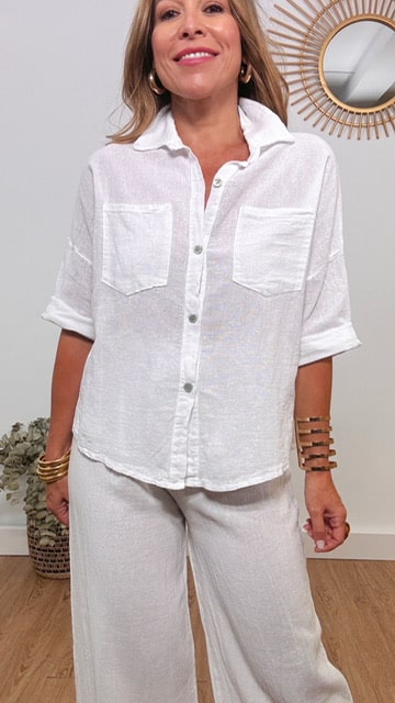 Camisa de algodón con media manga y bolsillos. Talla la única válida desde la 34 hasta la 42.