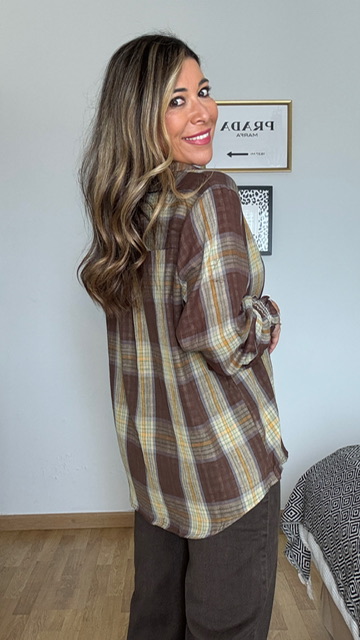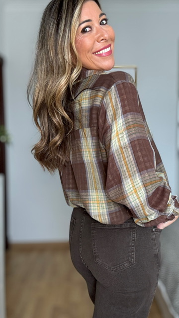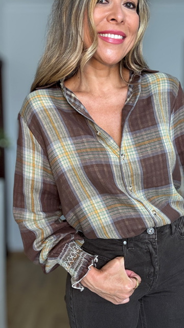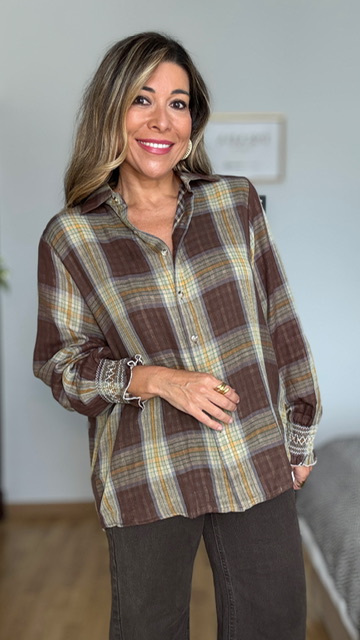 Blusa confeccionada en tejido de algodón con estampado de cuadros. Disponible por tallas.