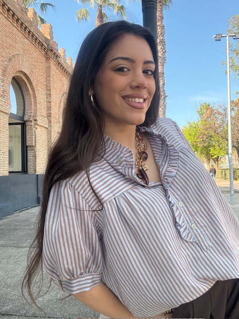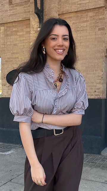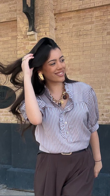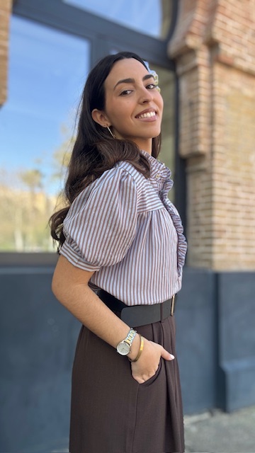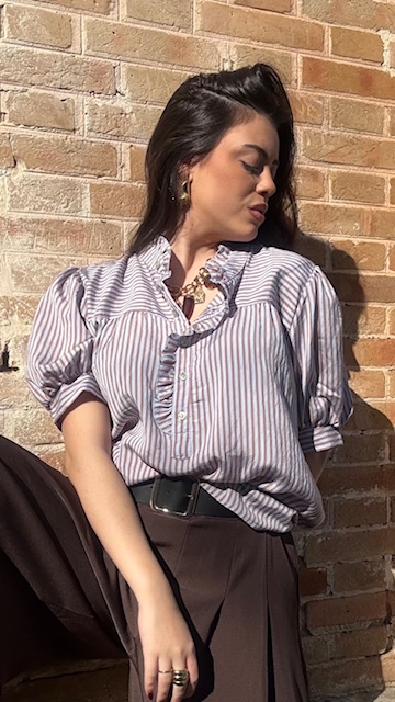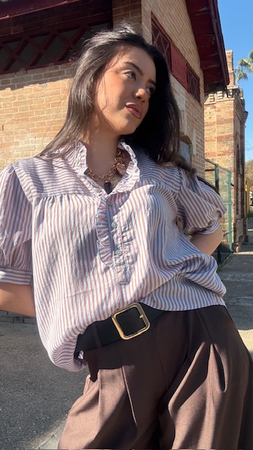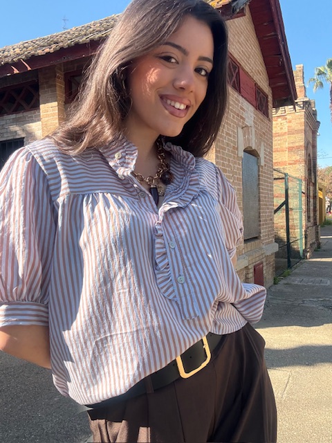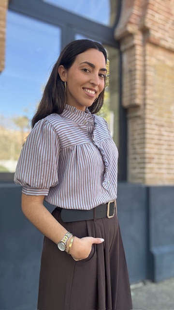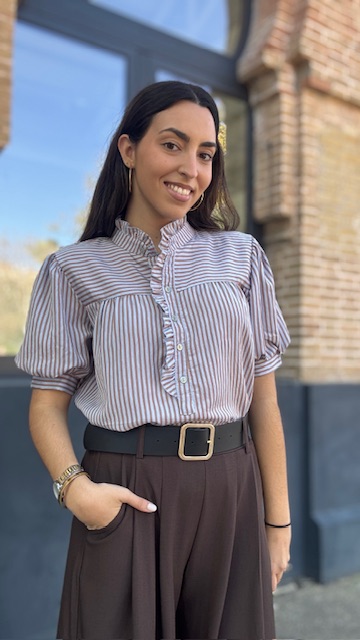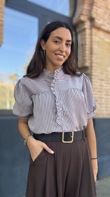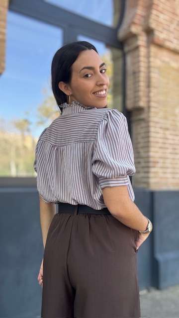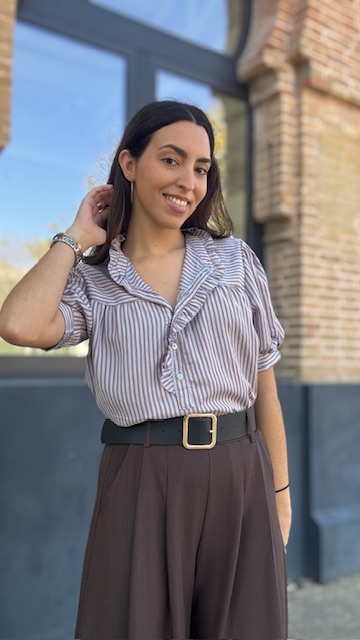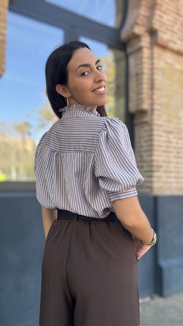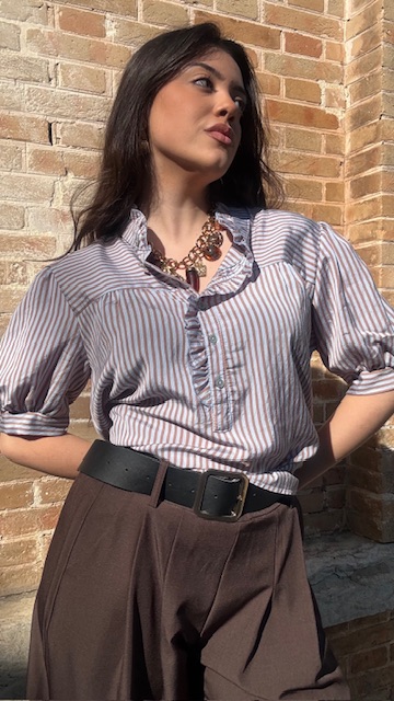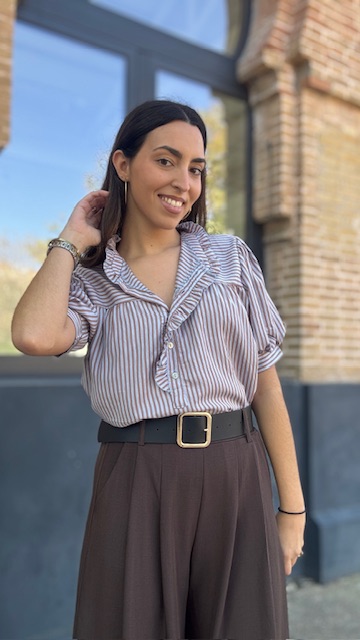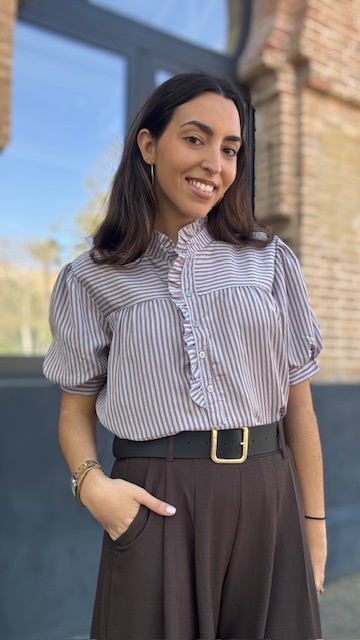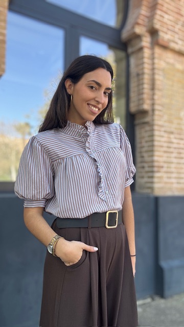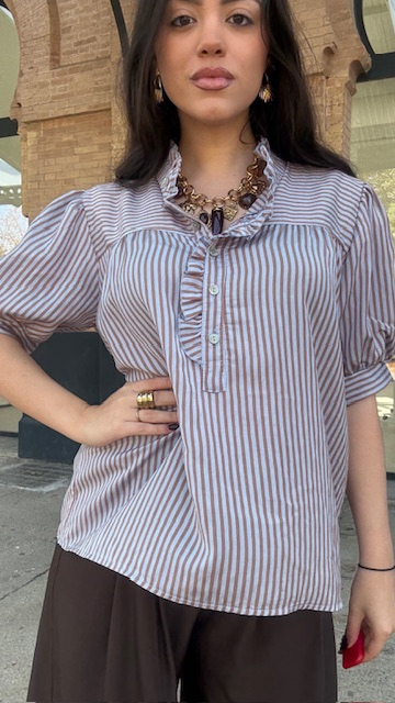 Camisa Lucrecia Rayas Camel Celeste