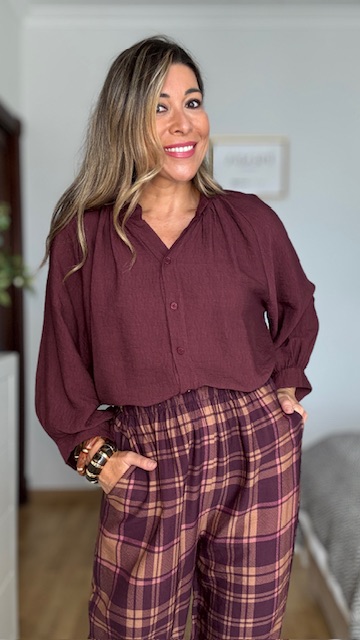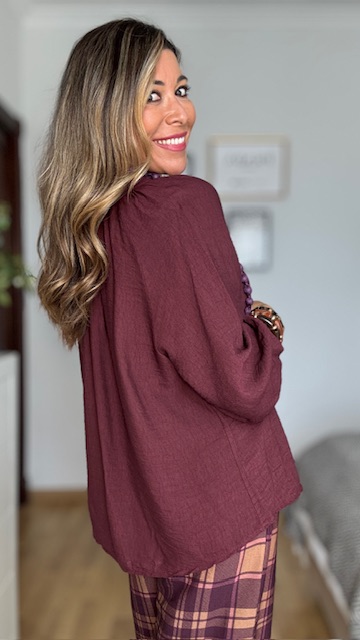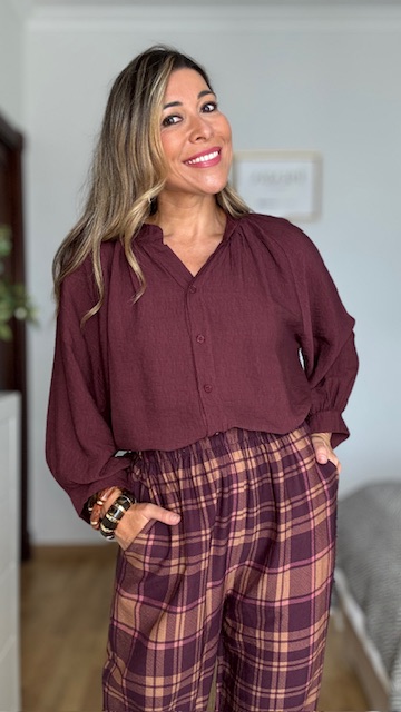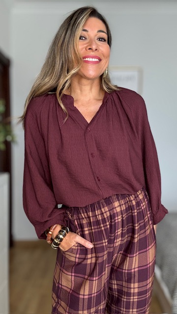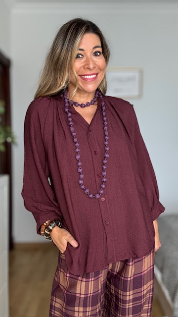 Blusa con cuello mao y pequeño escote de pico. talla única válida desde la 36 hasta la 40/42.