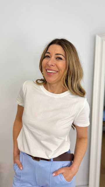 Camiseta básica de manga corta confeccionada en tejido de algodón en color blanco. Disponible por tallas.