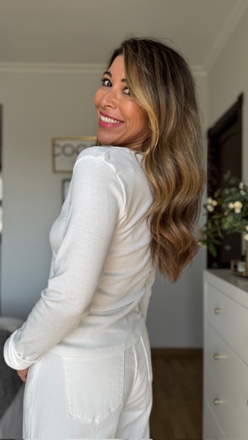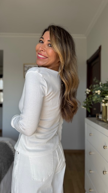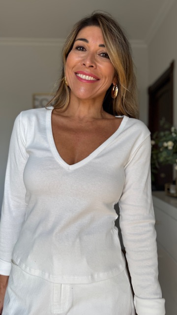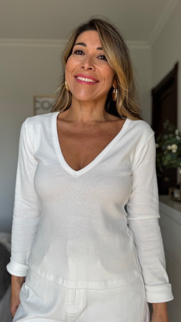 Camiseta 100% algodón de manga larga con escote tipo V . Talla única válida desde la 36 hasta la 42/44.