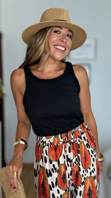 Top confeccionado en tejido de algodón en color negro. Talla única válida desde la 36 hasta la 44.