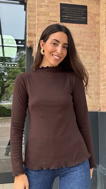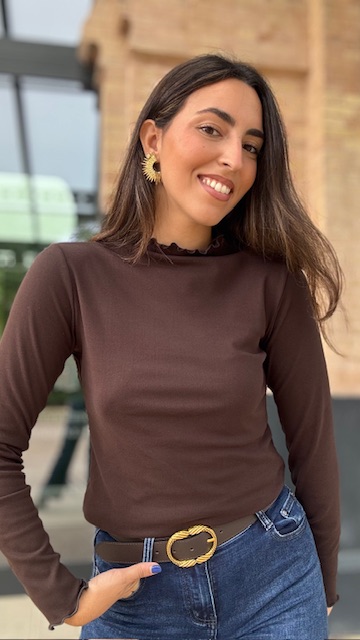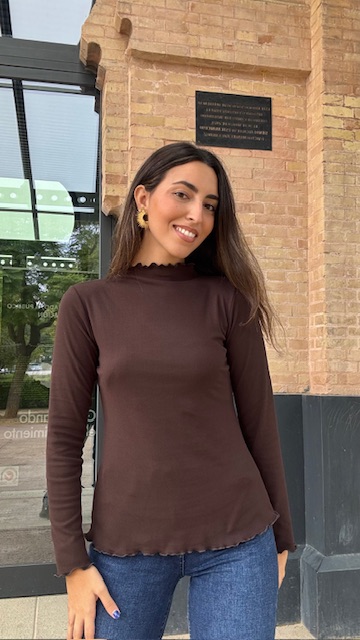 Camiseta confeccionada en tejido de poliéster de estilo térmico en color marrón . Talla única válida desde la 36 hasta la 44.