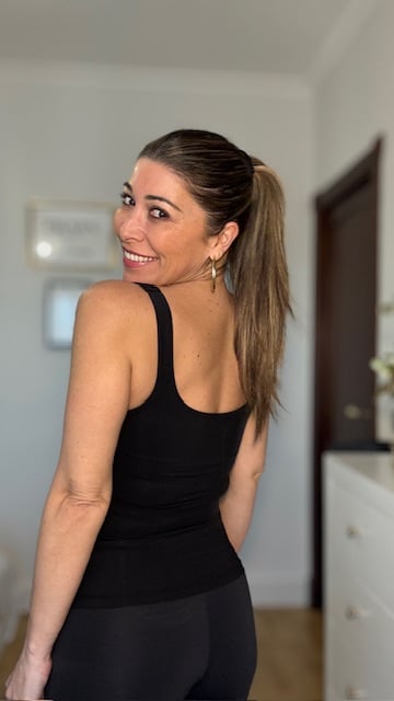 Camiseta de tirantas confeccionada en tejido de licra. Disponible en tres tallas y llevan elastano. Lleva tejido de refuerzo en la zona del pecho.