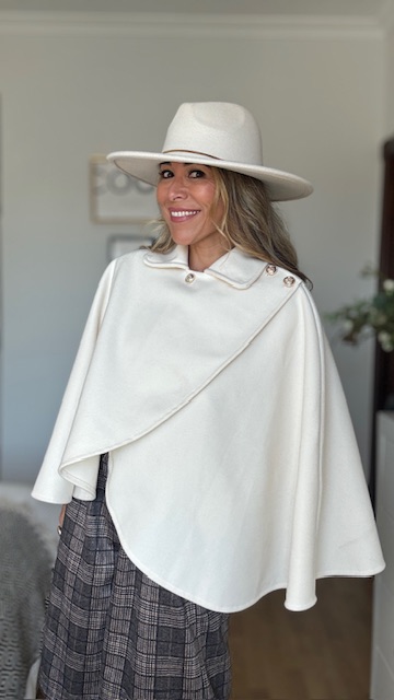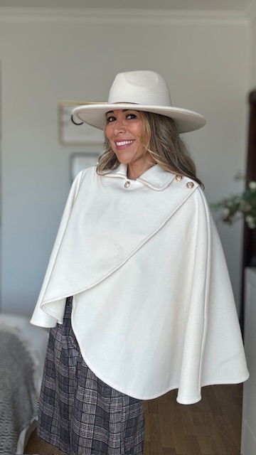 Capa de paño en color beige. Talla única válida desde la 36 hasta la 44.