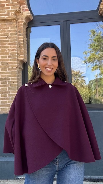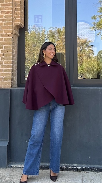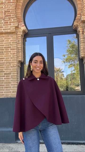 Capa de paño en color burdeos. Talla única válida desde la 36 hasta la 44.