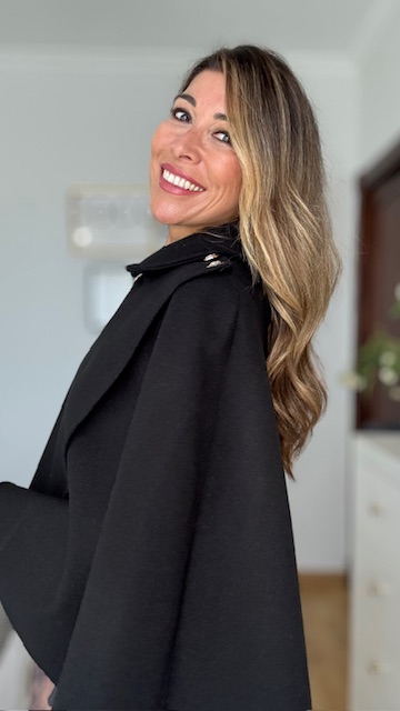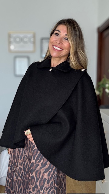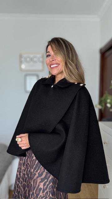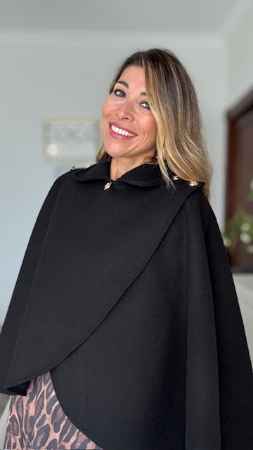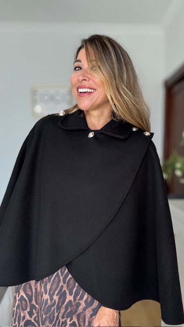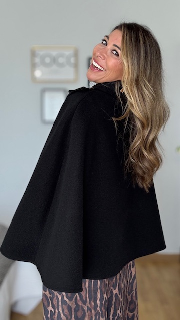Capa de paño en color negro . Talla única válida desde la 36 hasta la 44.