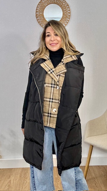 Plumifero sin mangas con chaquetilla en su interior. Disponible por tallas.
