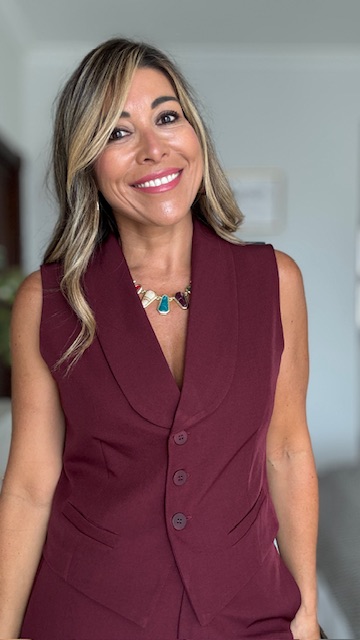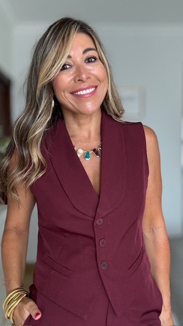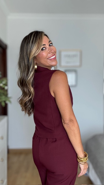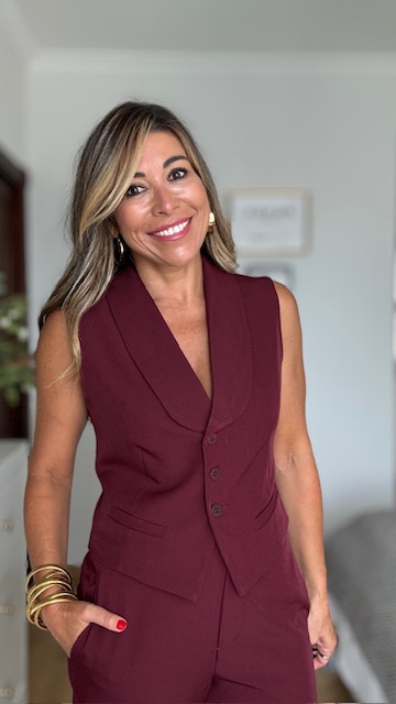 Chalequillo en color burdeos con botonadura delantera. Está forrado. Disponible por tallas. Va a juego con el pantalón Berlín.