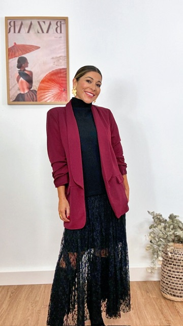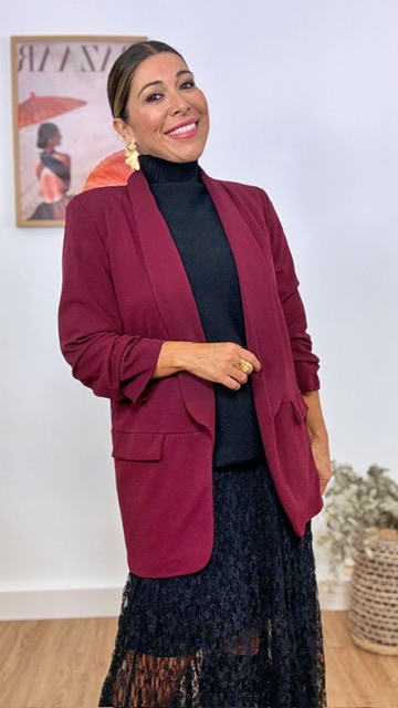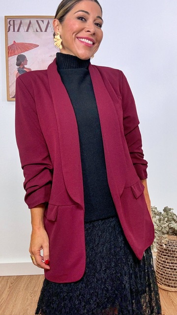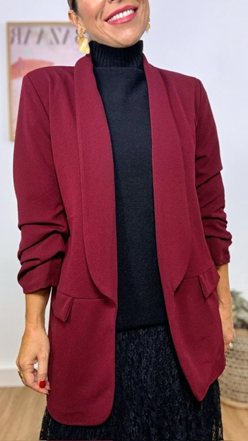 Chaqueta Blazer Mangas Arrugaditas Burdeos