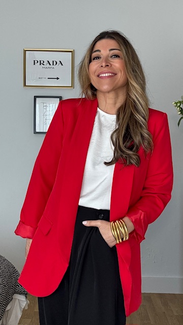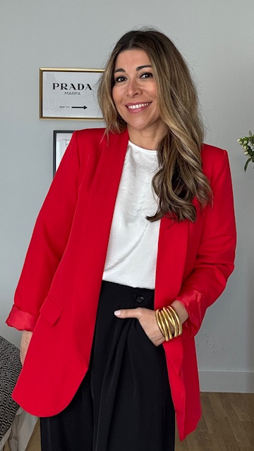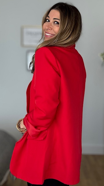 Chaqueta Blazer en color roja con manga clásica totalmente forrada en su interior. Talla única válida desde la talla 36 hasta la talla 44.