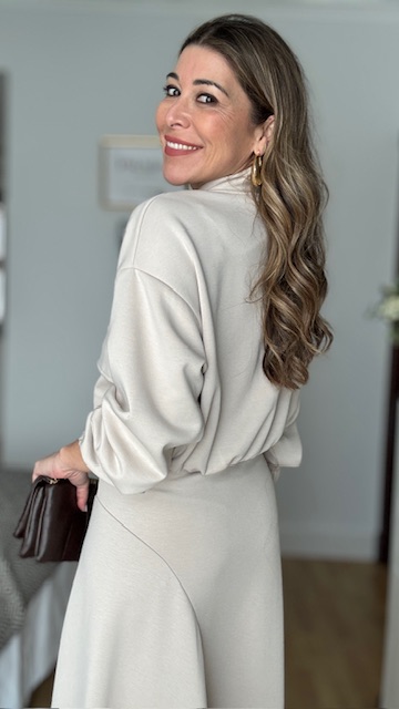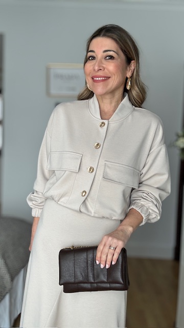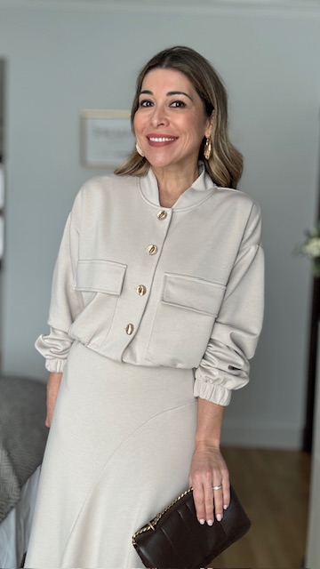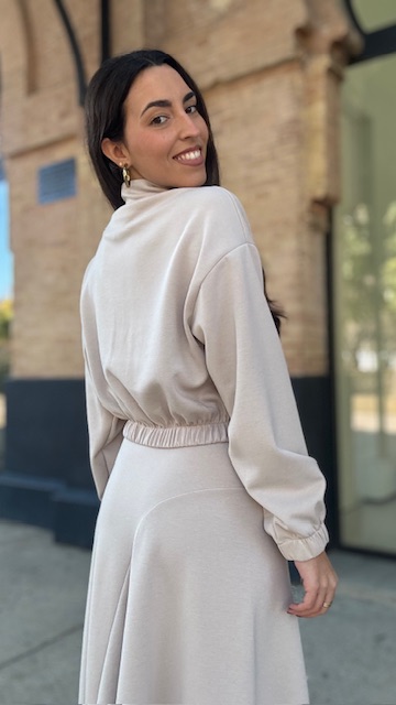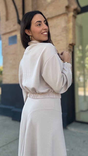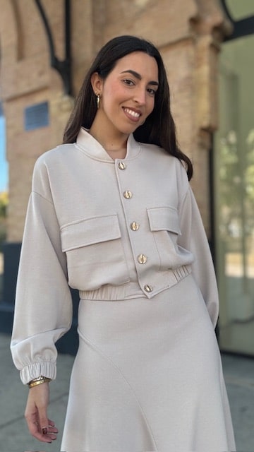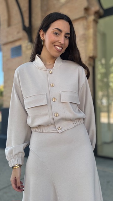 Chaqueta Bomber con botonadura delantera en color beige. Talla única válida desde la 36 hasta la 44.