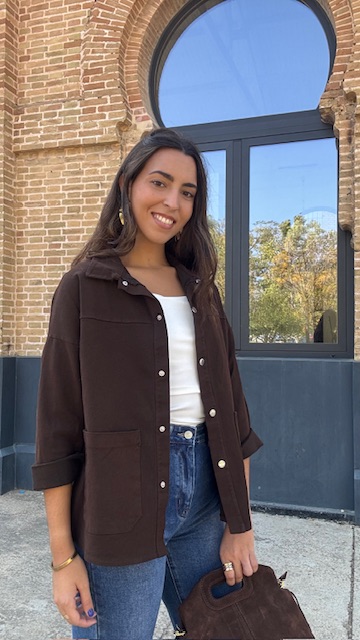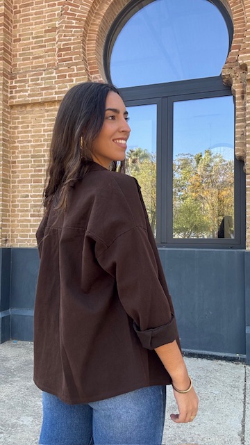 Chaqueta denim en color marrón con bolsillos en la parte delantera. Talla única válida desde la 36 hasta la 44.