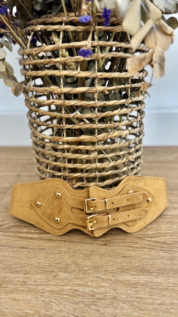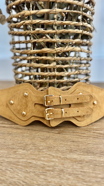 Cinturón ancho con elástico en la parte trasera estilo corsé en color camel. Talla única.